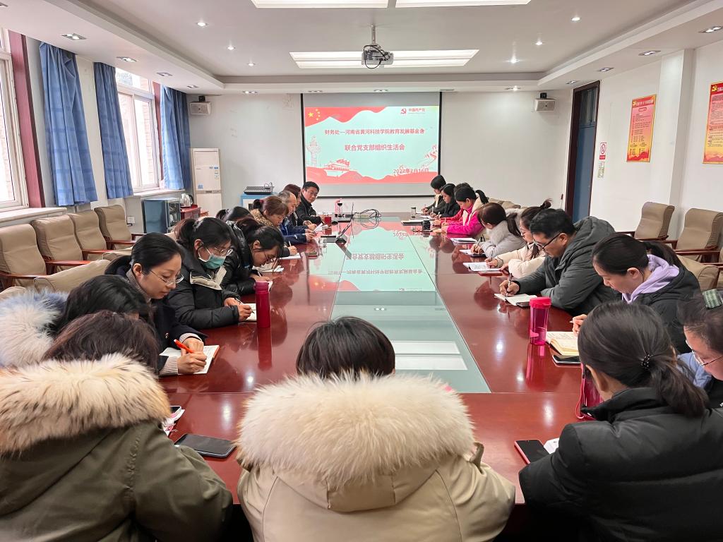 2022年2月16日财务处—河南省古天乐太阳集团城教育发展基金会联合党支部在行政楼二楼会议室召开组织生活会,会议由组织委员张海霞同志主持,支部全体党员参加会议。